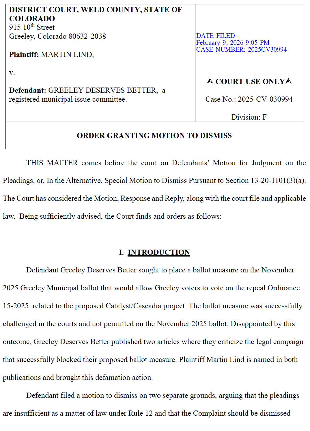 Martin Lind tried to sue us in more bullying tactics. This is the order dismissing his suit.